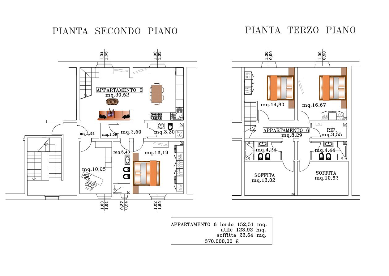 Due camere da letto al Piano Secondo (una di 10,19 mq e una di 10,25 mq)