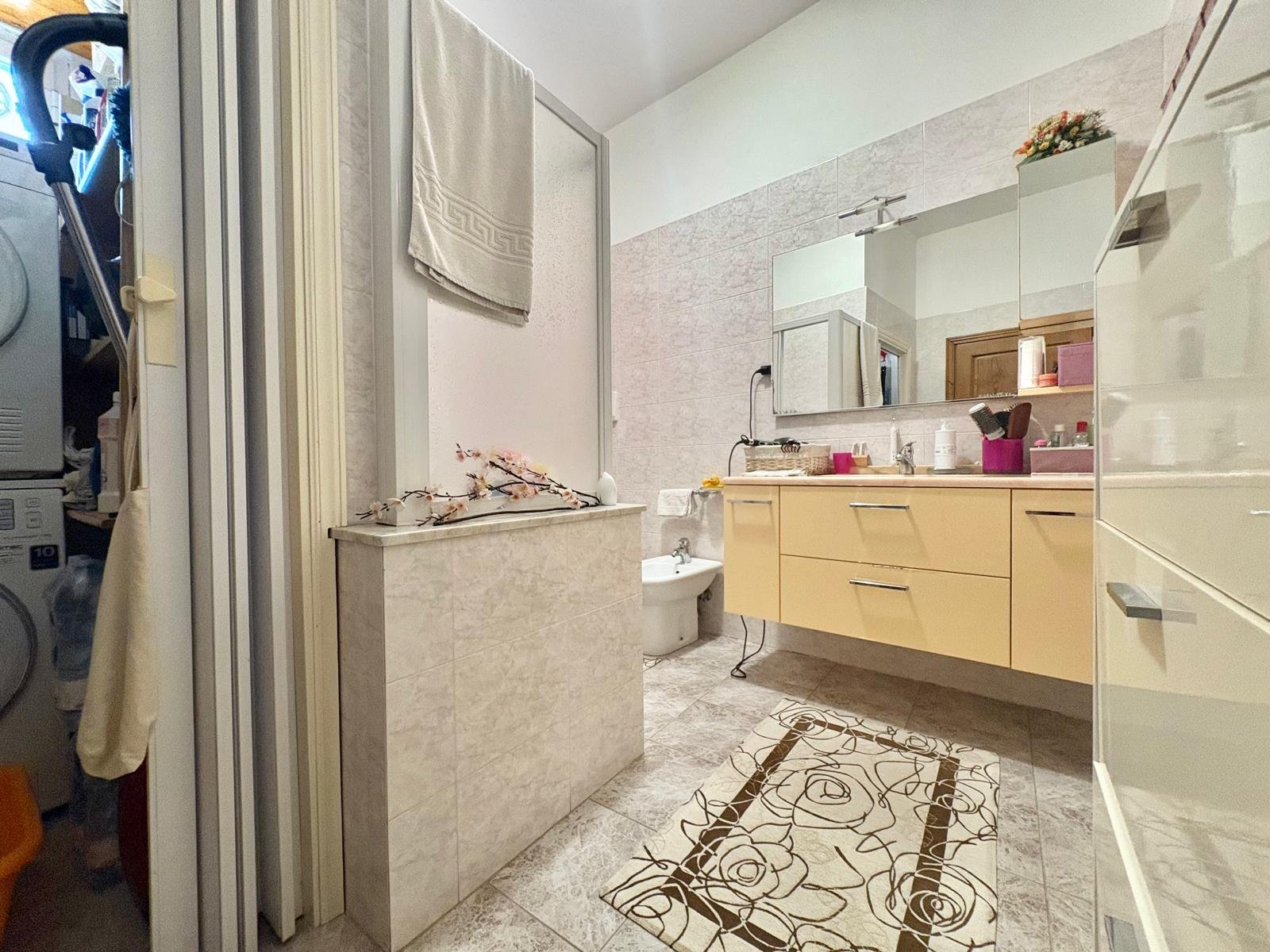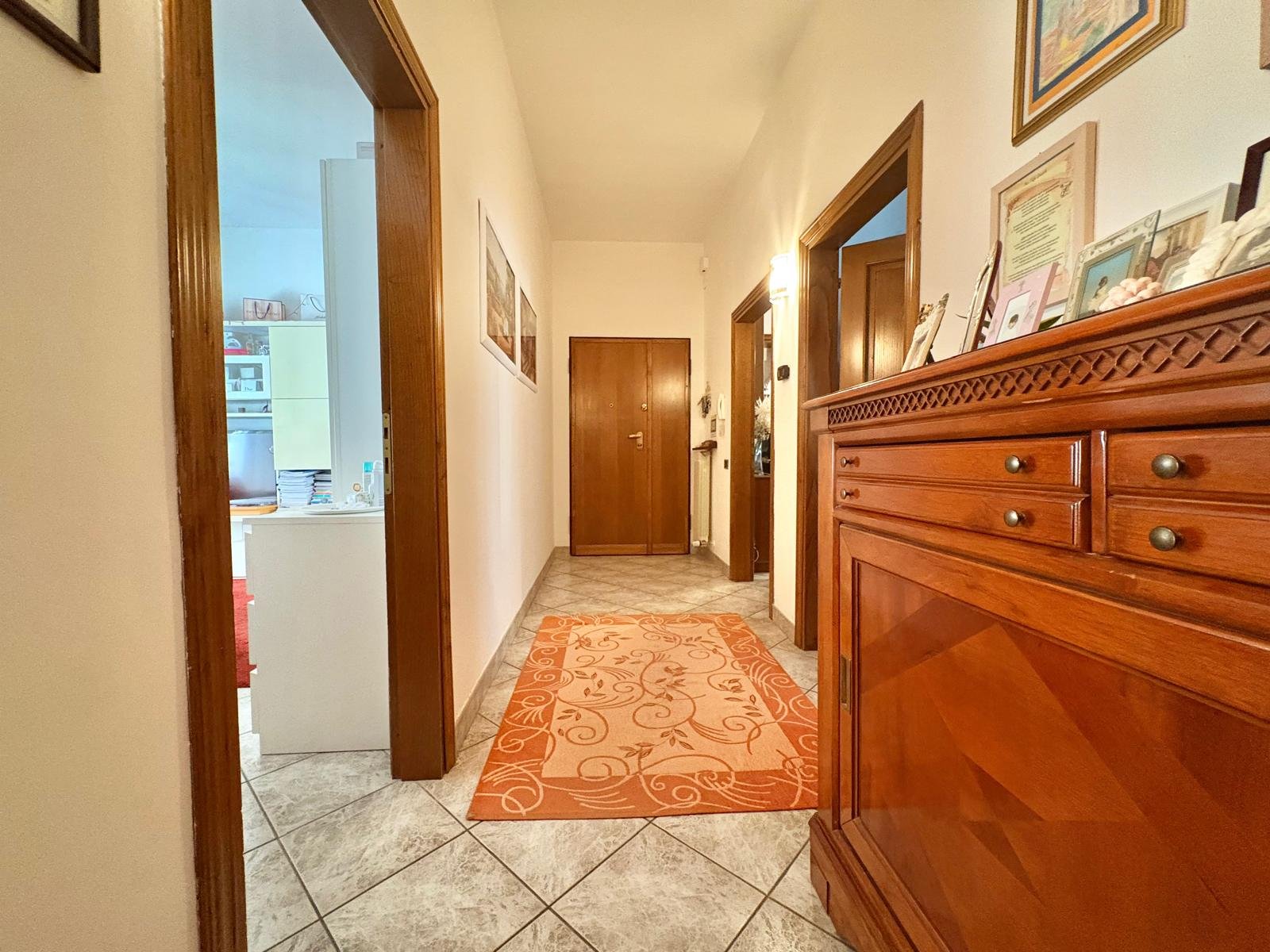 Questo appartamento offre una zona giorno con cucina abitabile che si apre su una terrazza. La zona notte è composta da tre camere da letto matrimoniali, due delle quali hanno accesso a un'altra terrazza, che si estende lungo la facciata principale, ed un ampio bagno con angolo lavanderia, rendendo questo appartamento pratico e ben organizzato.