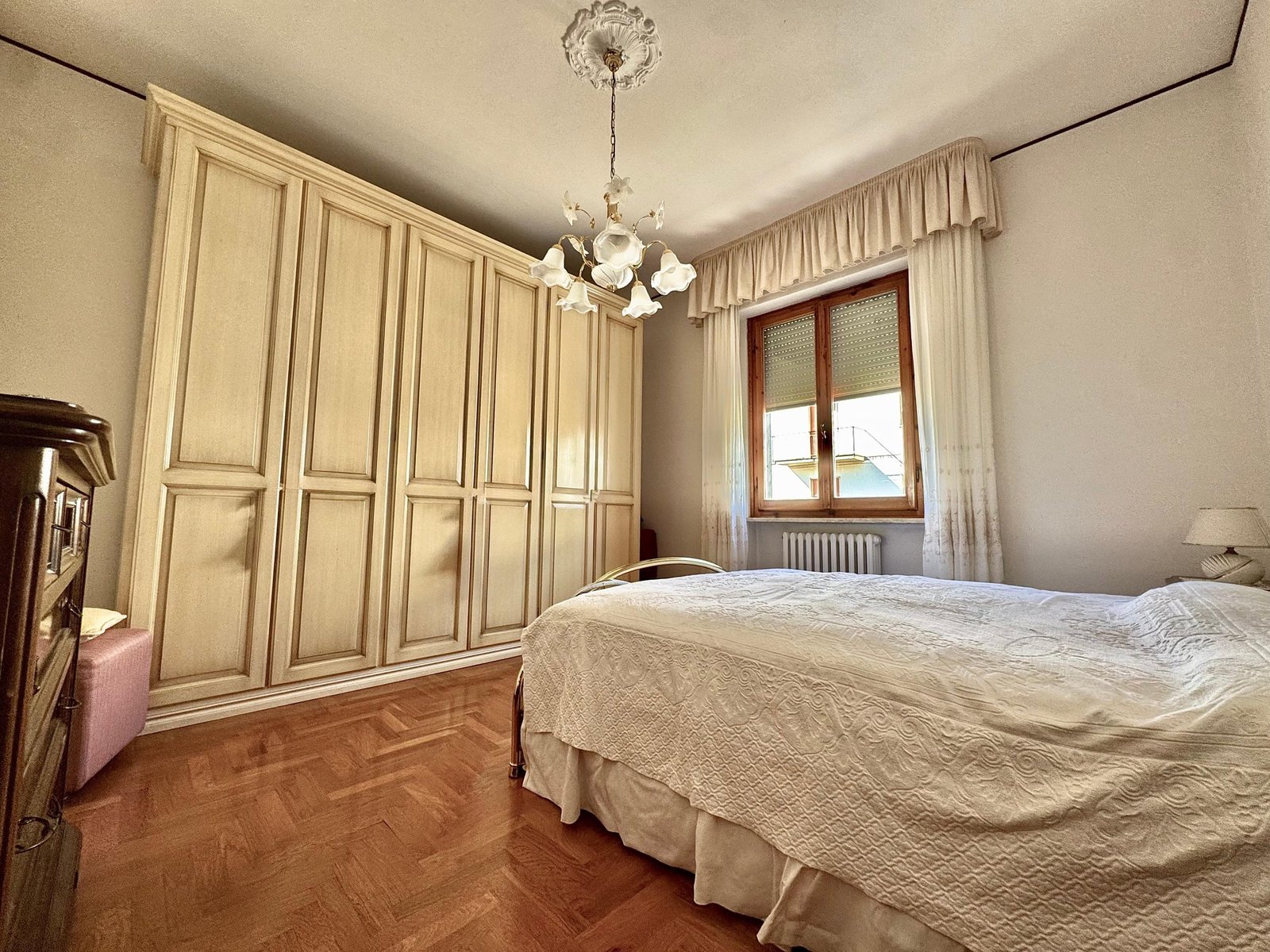 La zona notte è composta da due camere da letto matrimoniali, spaziose e luminose, che garantiscono il massimo del comfort. L'ampio bagno, dotato sia di vasca che di doccia, offre un'ottima soluzione per il benessere quotidiano. Inoltre, l'appartamento dispone di un garage al piano terra di circa 18 mq.