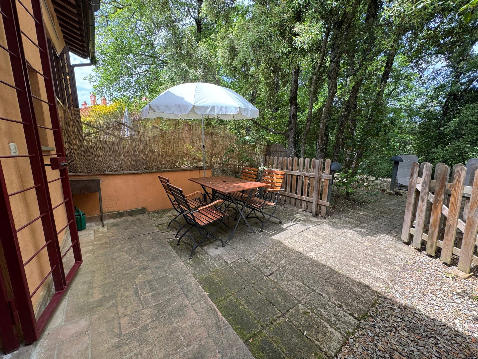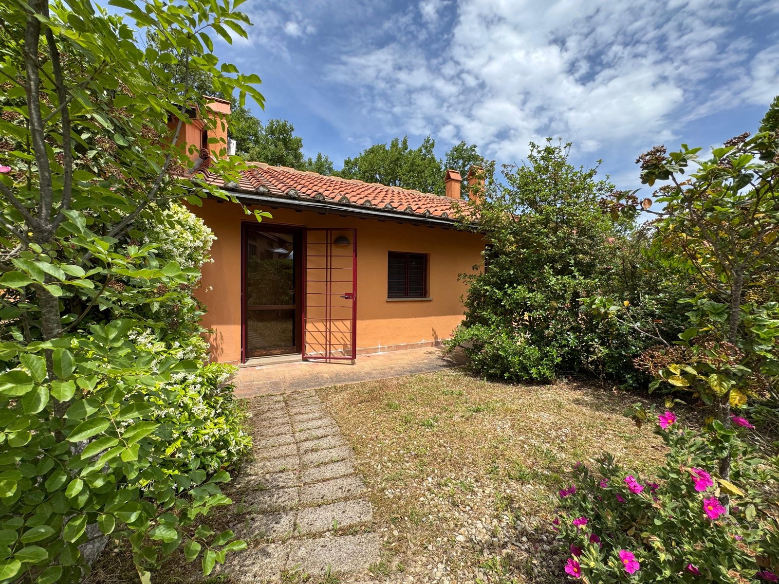 La zona notte comprende una camera da letto matrimoniale con accesso ad un altro pezzo di giardino, un'altra camera verandata ed un comodo bagno.La proprietà include una piscina condominiale, perfetta per trascorrere giornate di relax e divertimento con la famiglia.