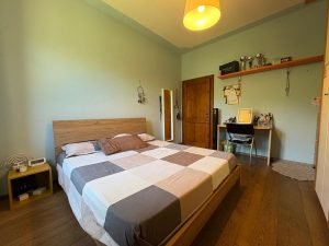 Tramite delle scale esterne arriviamo ad un meraviglioso loggiato affacciato sul terreno di proprietà che ci accompagna all’ingresso dell’abitazione. La zona giorno è openspace con cucina abitabile e living con camino. Sullo stesso piano la zona notte si suddivide in 3 camere matrimoniali e un bagno finestrato con vasca e doccia.
