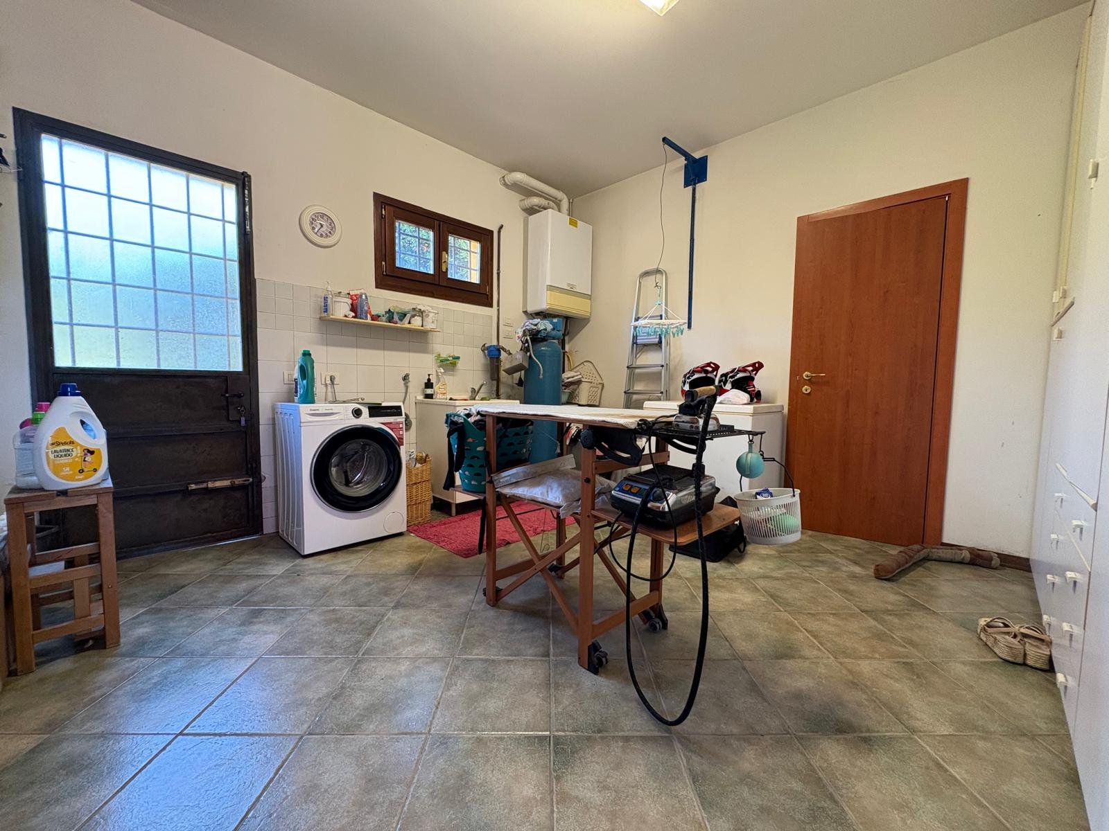 Al piano terra (collegato al piano primo da una scala interna) troviamo un garage doppio, una lavanderia, una zona cantina/stanza accessoria ed un bagno finestrato.